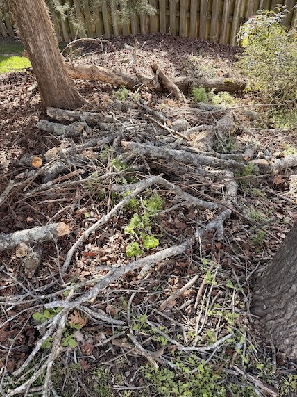 Here's all the branches that dropped in the backyard. It's getting crazy, that's suppose to be a backyard, but right now it just looks like a small dump site for branches.