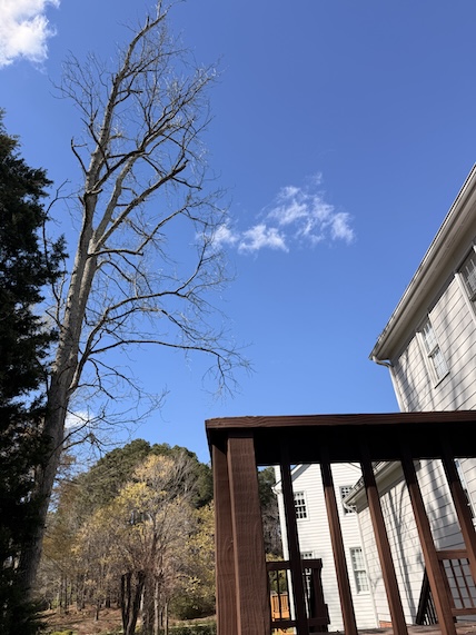 I am also trying to get my HoA to approve of a tree removal in my backyard. It's already dead, and while we didn't get hit with any tornados here, the strong wind did knock some of the branches down. It's kind of banging the house and littering the yard, if nothing else. In fact, I actually have a picture of this thing, hang on let me see....