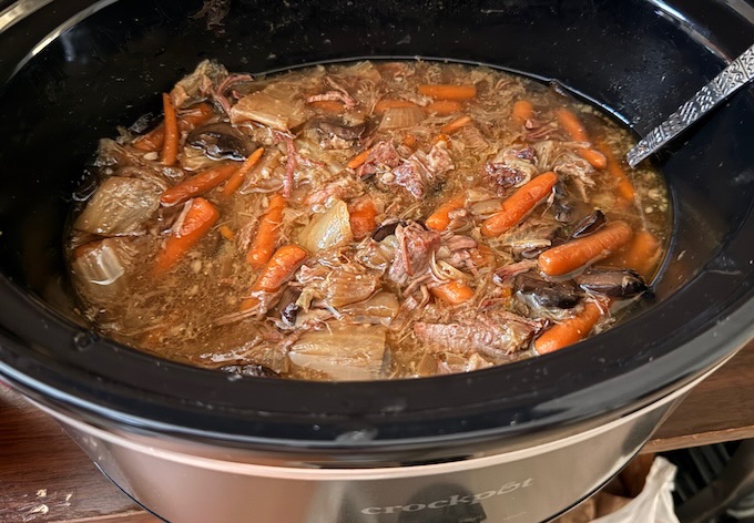 As the weather cools, I start to crave soups and stews, which is more or less what I am doing these days. Here is a photo of my last crockpot pot roast.